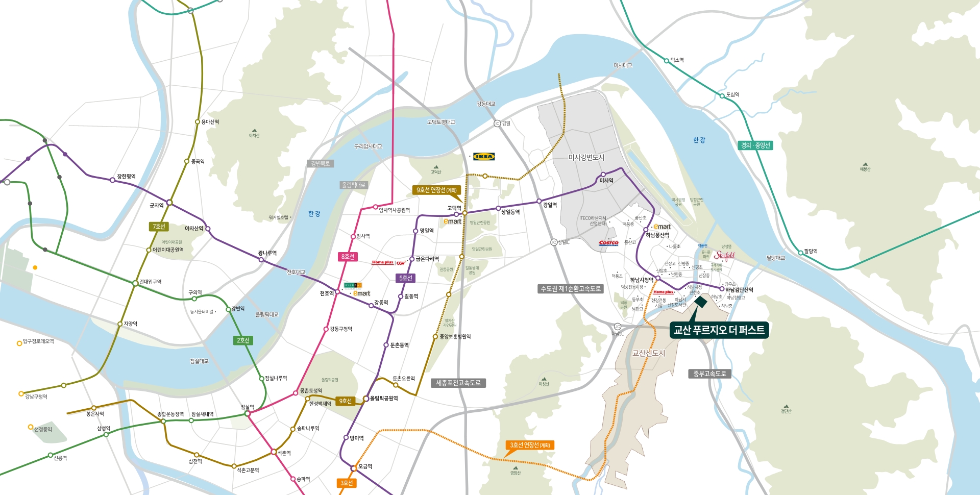 다양한 교통으로 서울을 편리하게· 도보 거리 5호선 하남검단산역 및 상일IC, 하남IC 등 도로망 인접