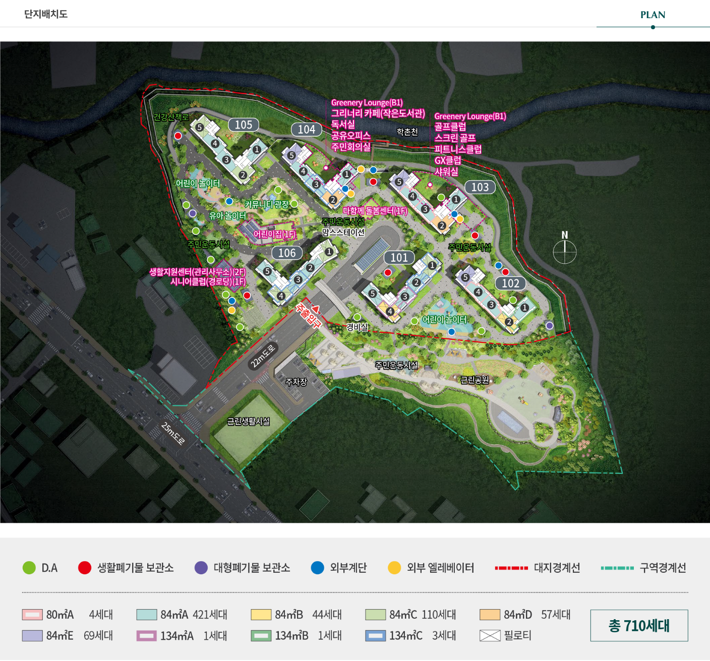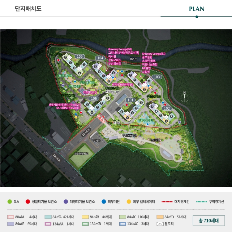 단지 내 조경 및 세부 식재계획, 시설물의 위치는 특화설계 진행 및 현장 상황에 의해 실제 시공이 변경될 예정입니다.