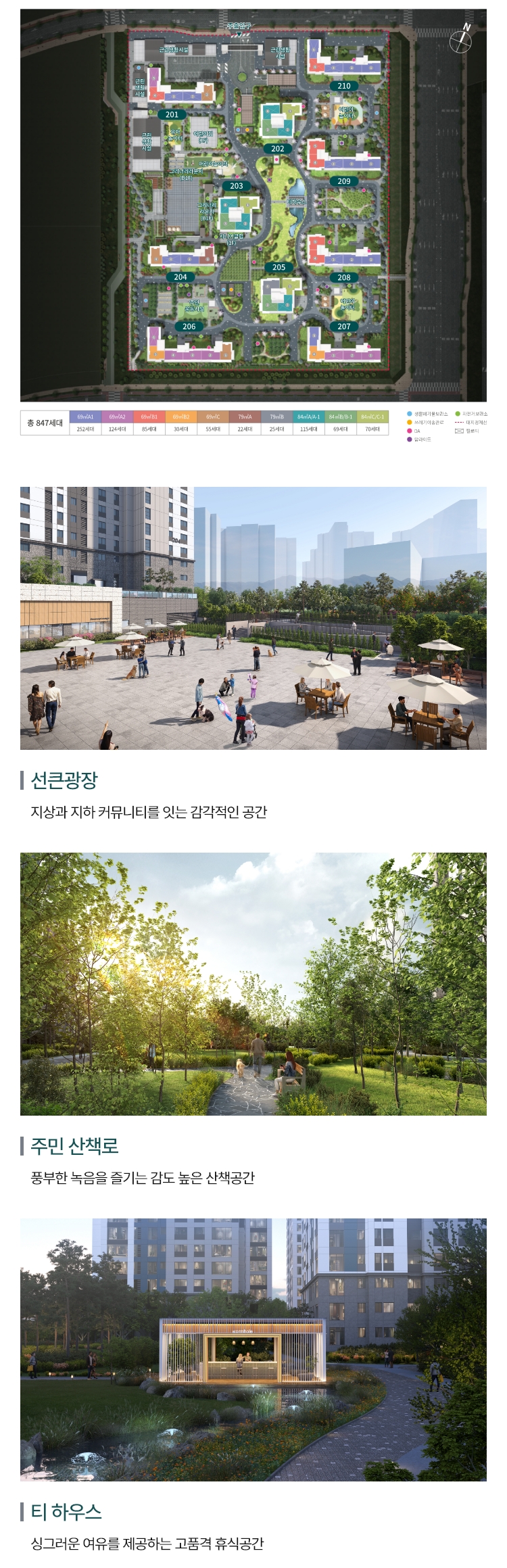 단지 외부의 건물, 녹지, 도로, 학교, 도서관, 공원 등은 현재 상황 및 계획을보 여주는 것으로 당사의 시공 범위가 아니며, CG 및 모형은 소비자의 이해를 돕기 위해 작성된 것으로 실제 조성시 상이할 수 있으며 이에 대한 이의를 제기할 수 없습니다.