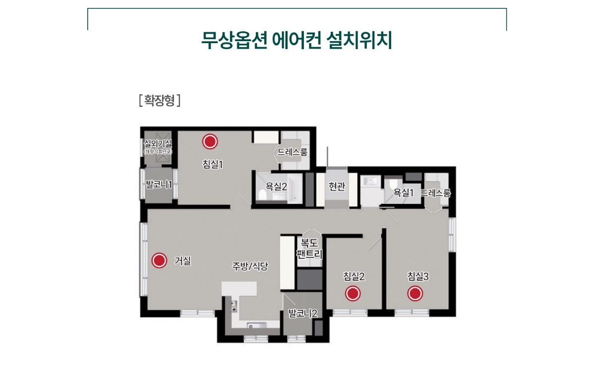 • 드레스룸, 욕실 바닥 등은 별도 난방제어가 불가합니다.