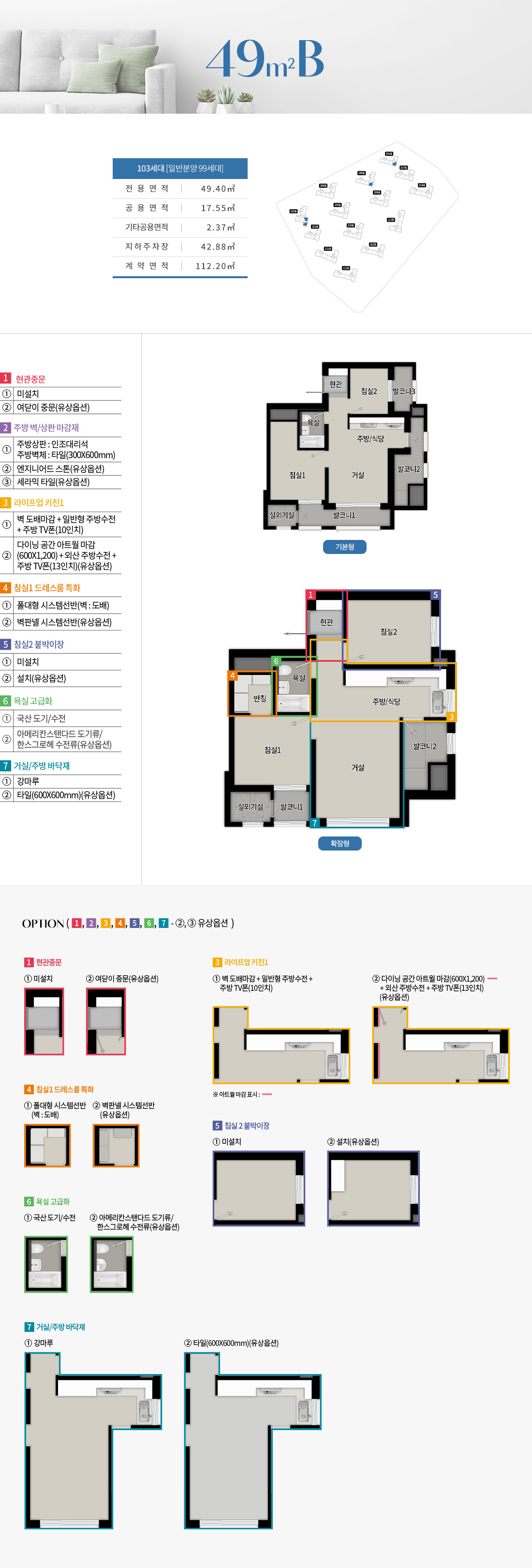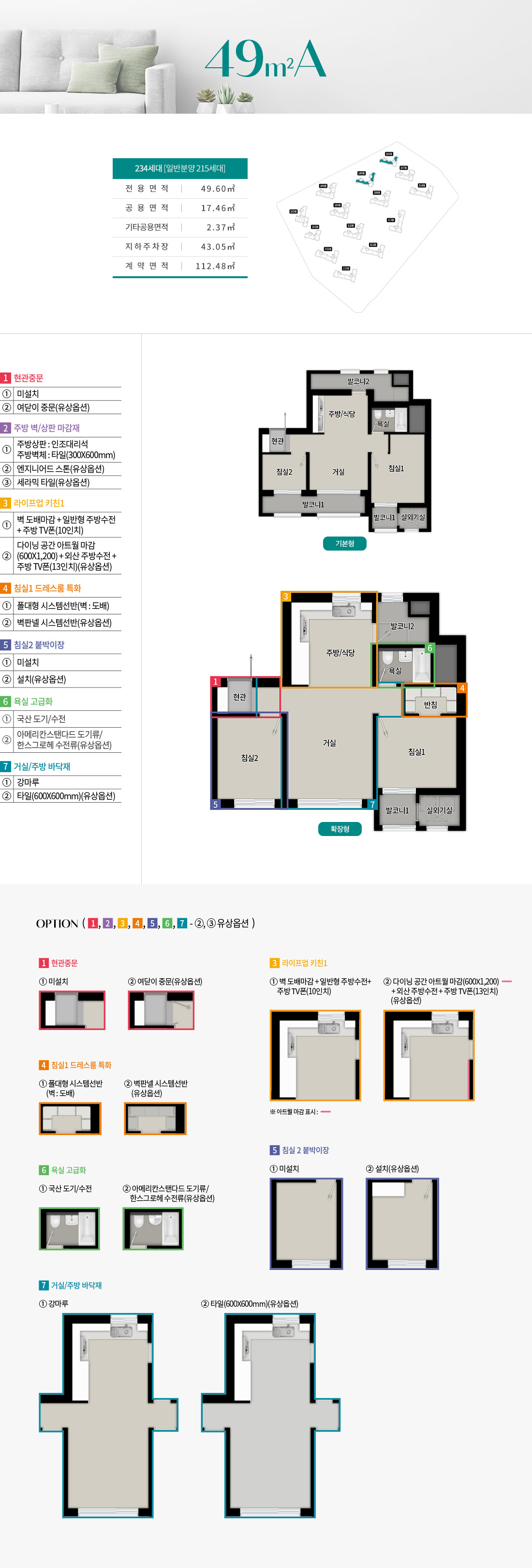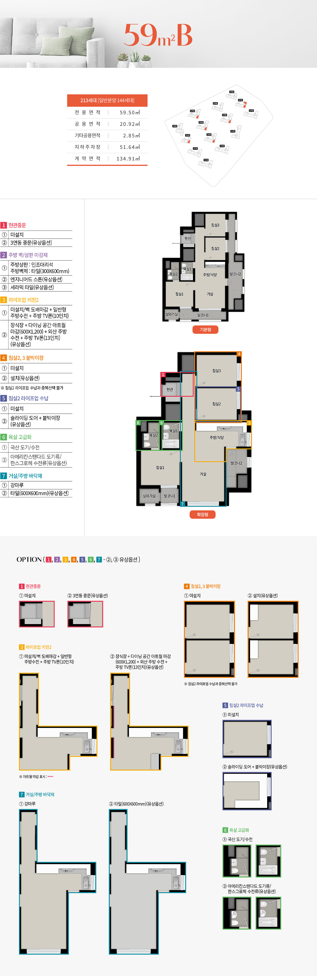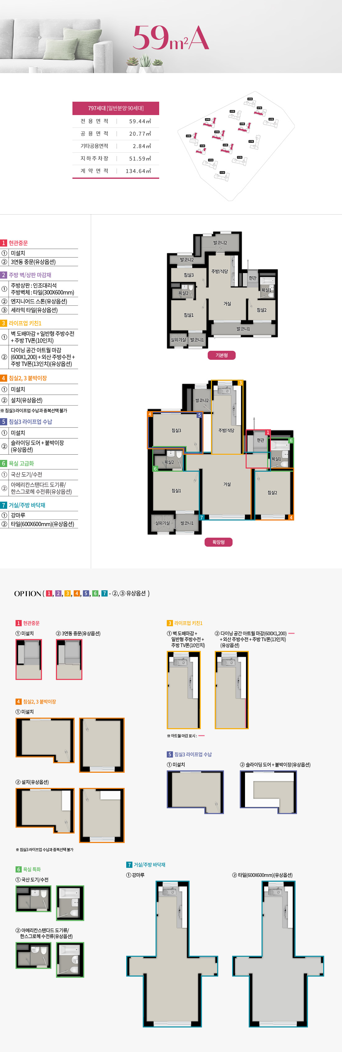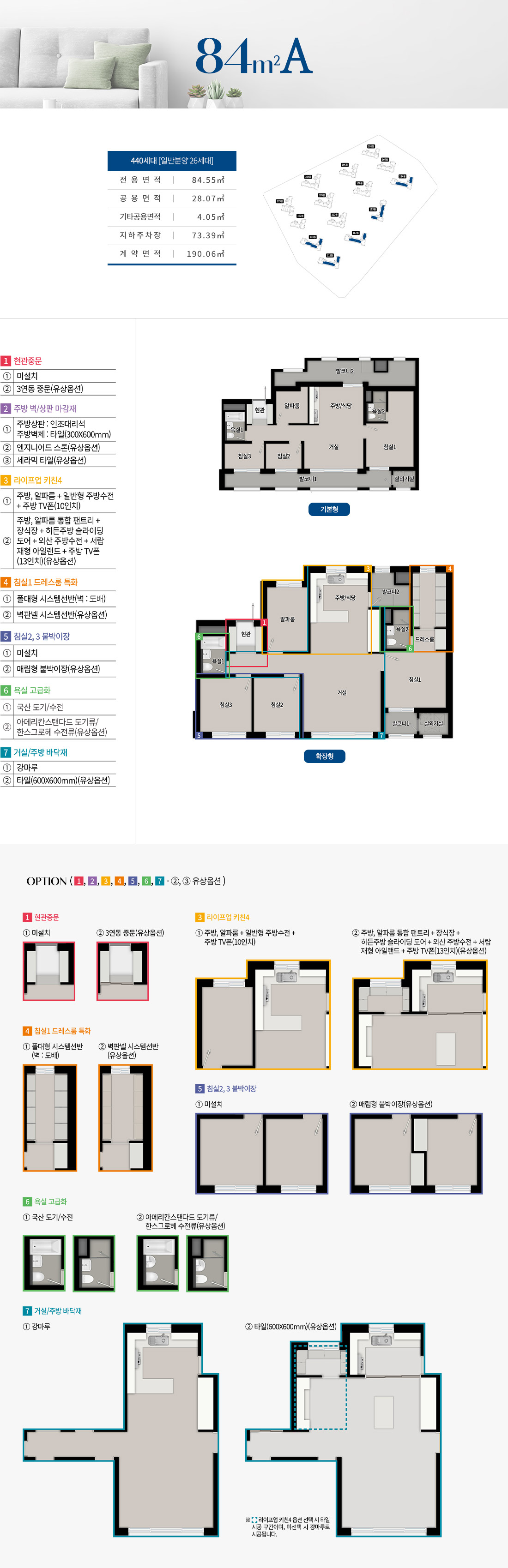 ※ 발코니 확장 및 옵션 선택에 따라 배선기구, 스마트 스위치, 조명기구, 세대분전반, 온도조절기 및 스위치 등의 종류, 수량, 위치는 변경될 수 있습니다.