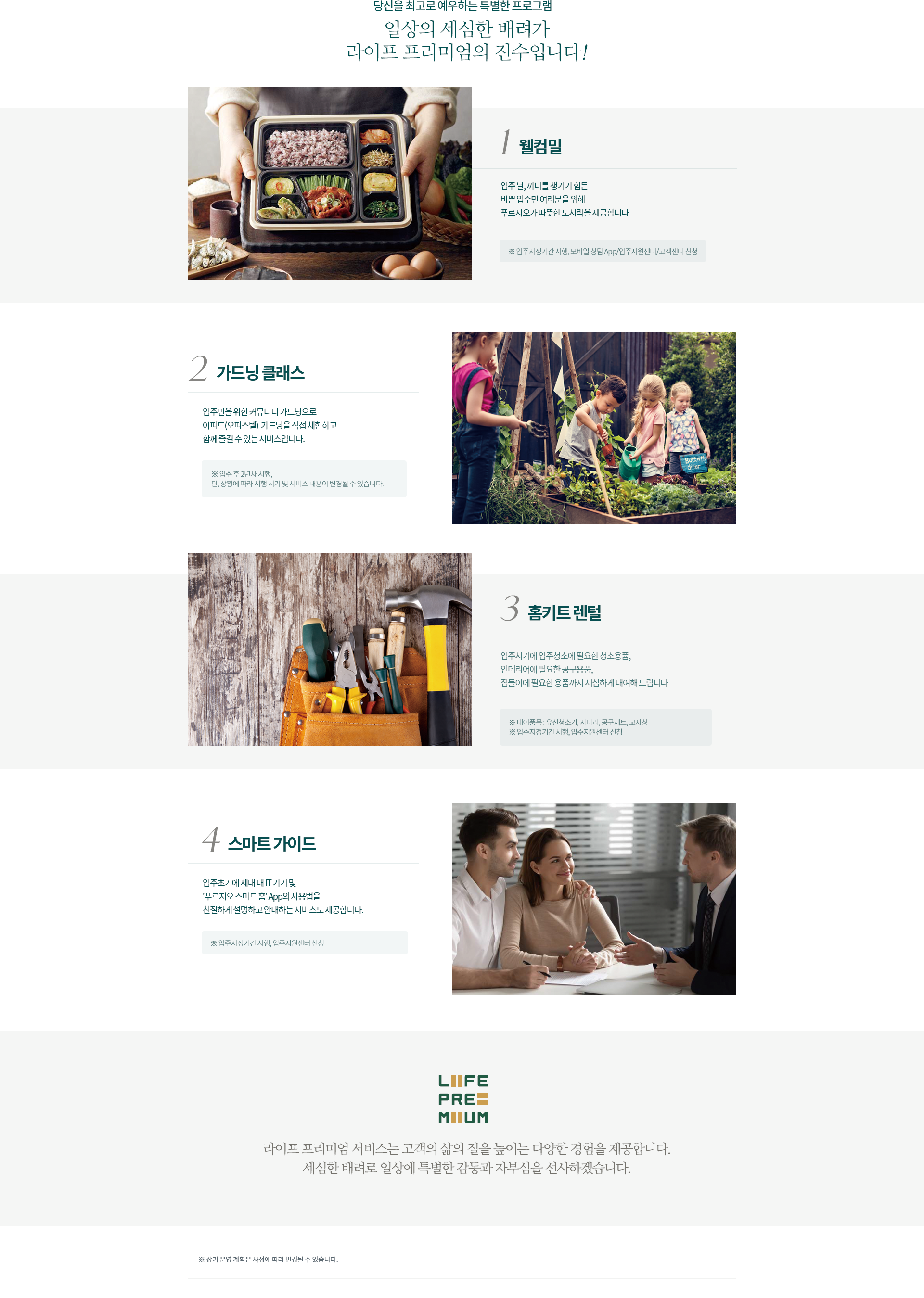 푸르지오는 본연의 삶에 대한 배려와 존중으로 4가지 프리미엄 서비스를 약속합니다