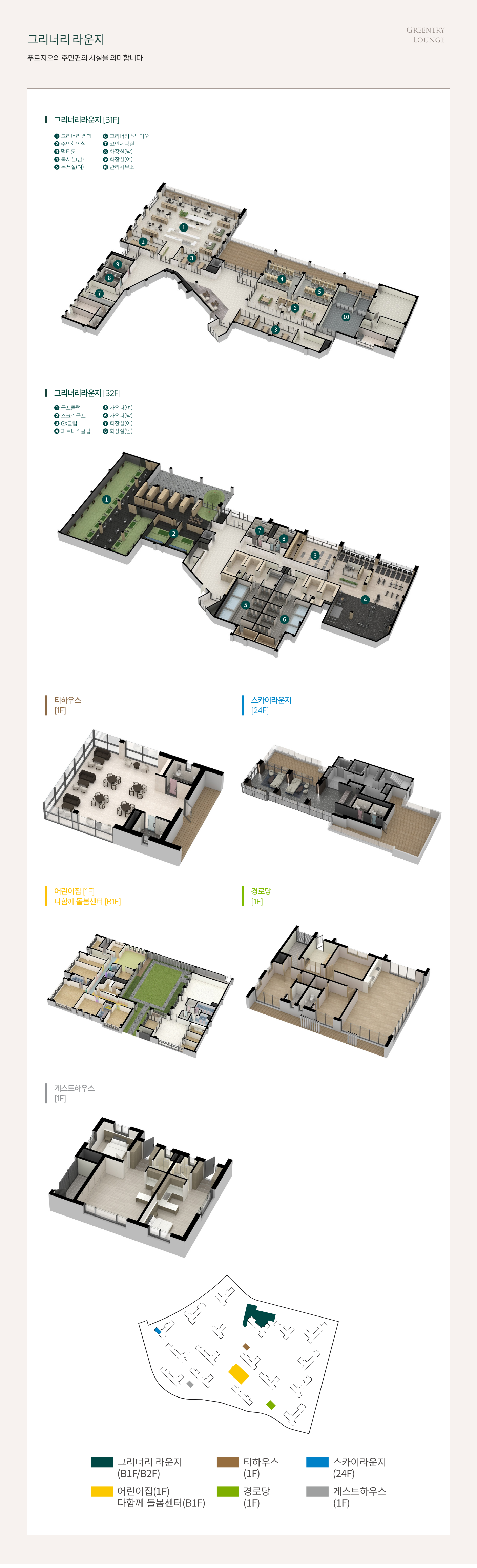- 커뮤니티(Greenery Lounge) 중 일부 공간은 일정 기간 푸르지오 A/S센터로 사용될 수 있습니다.