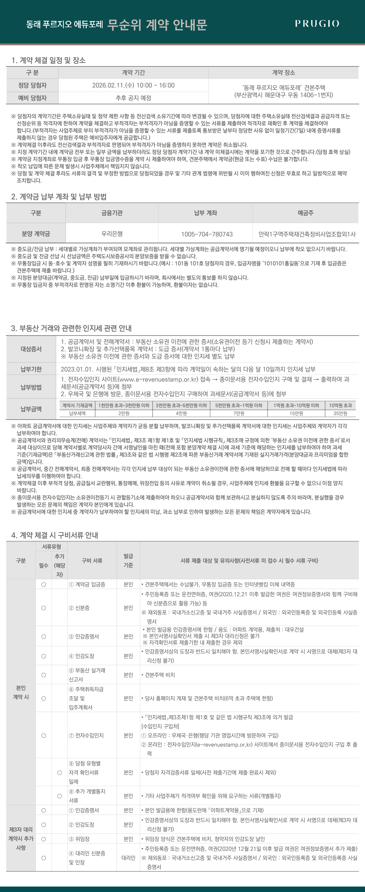 동래 푸르지오 에듀포레 무순위 계약 안내문