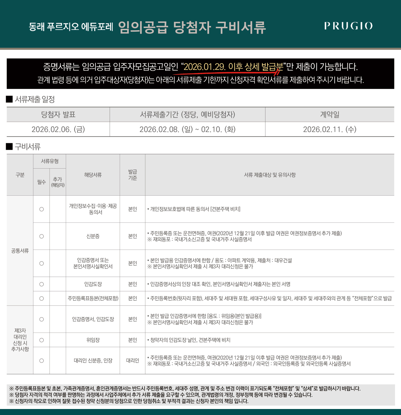동래 푸르지오 에듀포레 임의공급 서류접수안내문
