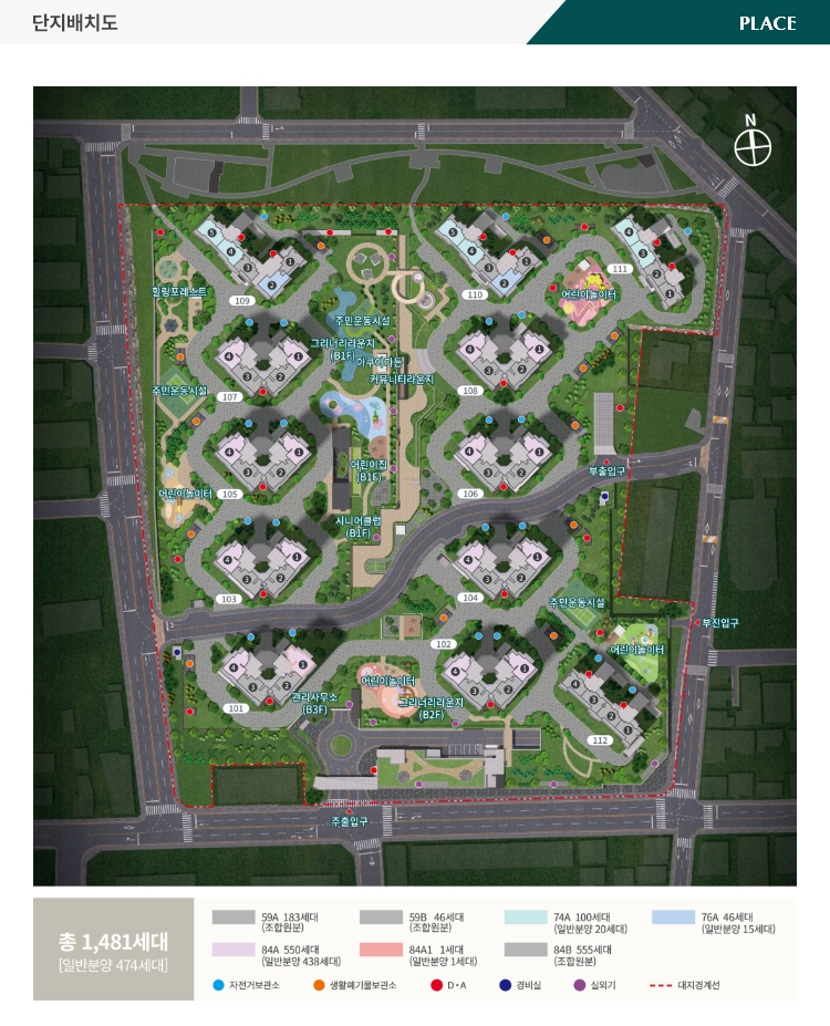- 커뮤니티 등의 부대복리시설과 조경, 시설물의 명칭은 변경될 수 있습니다.
