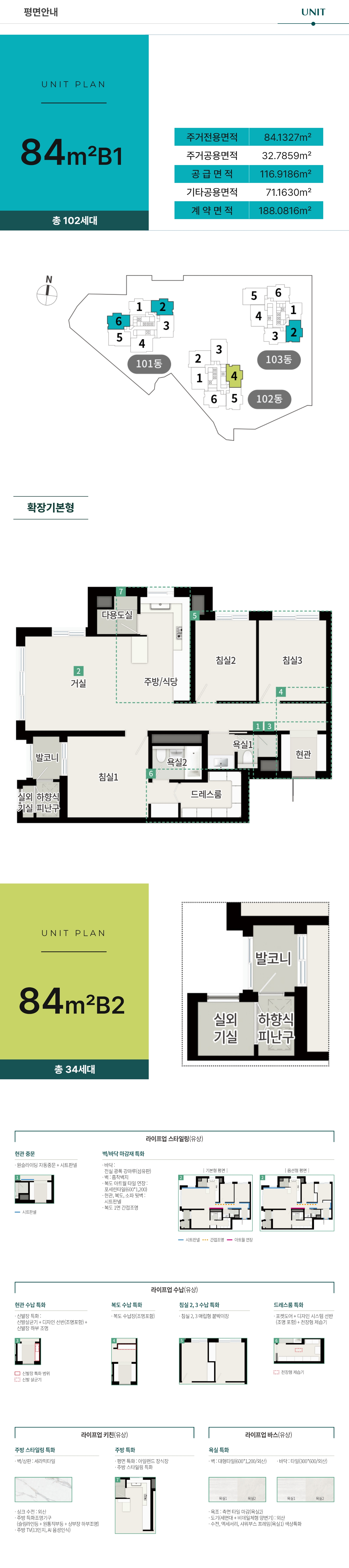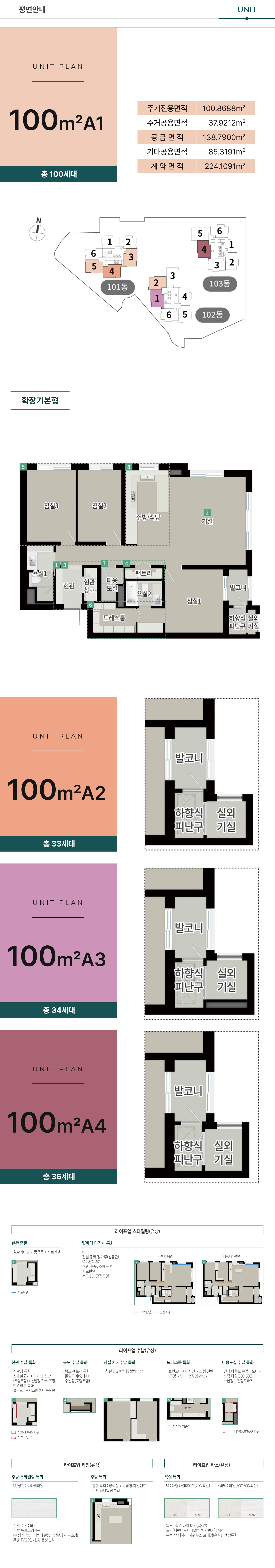 - 대피동선에 따라 세대 내 동호수별로 하향식 피난구와 실외기실 위치가 상이할 수 있으며, 계약 전 반드시 확인하시기 바랍니다.