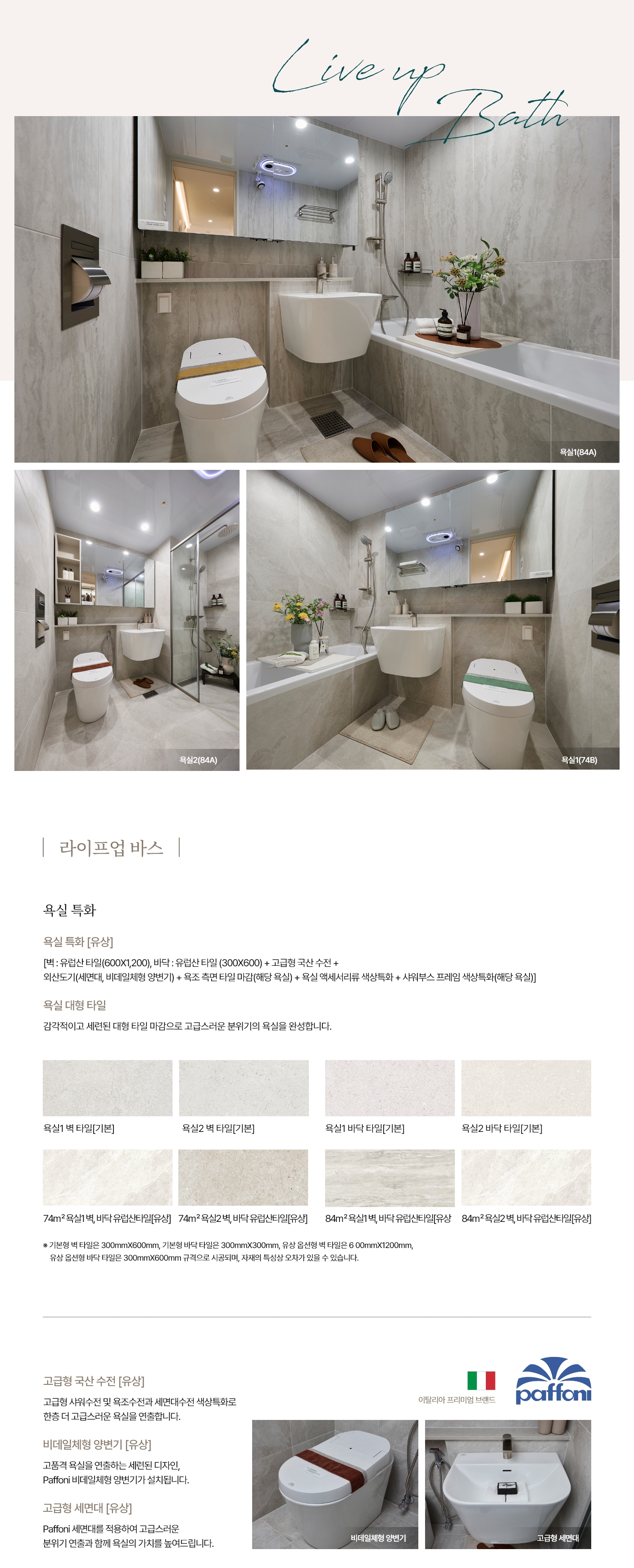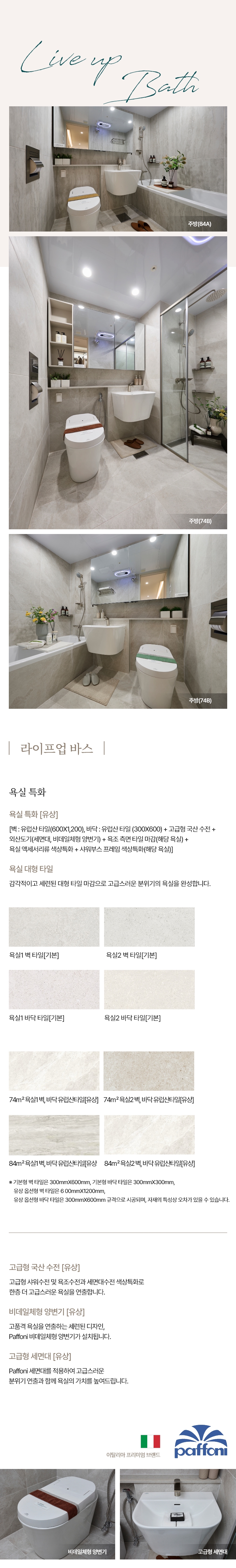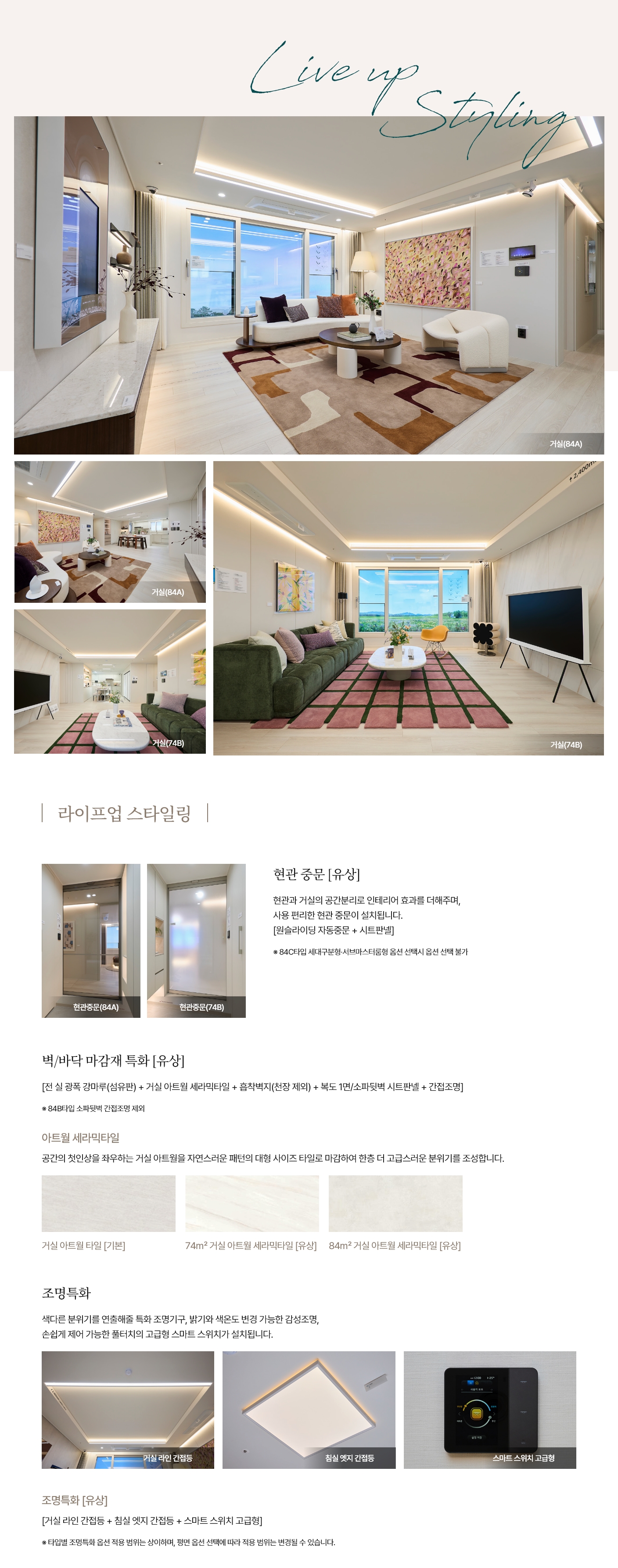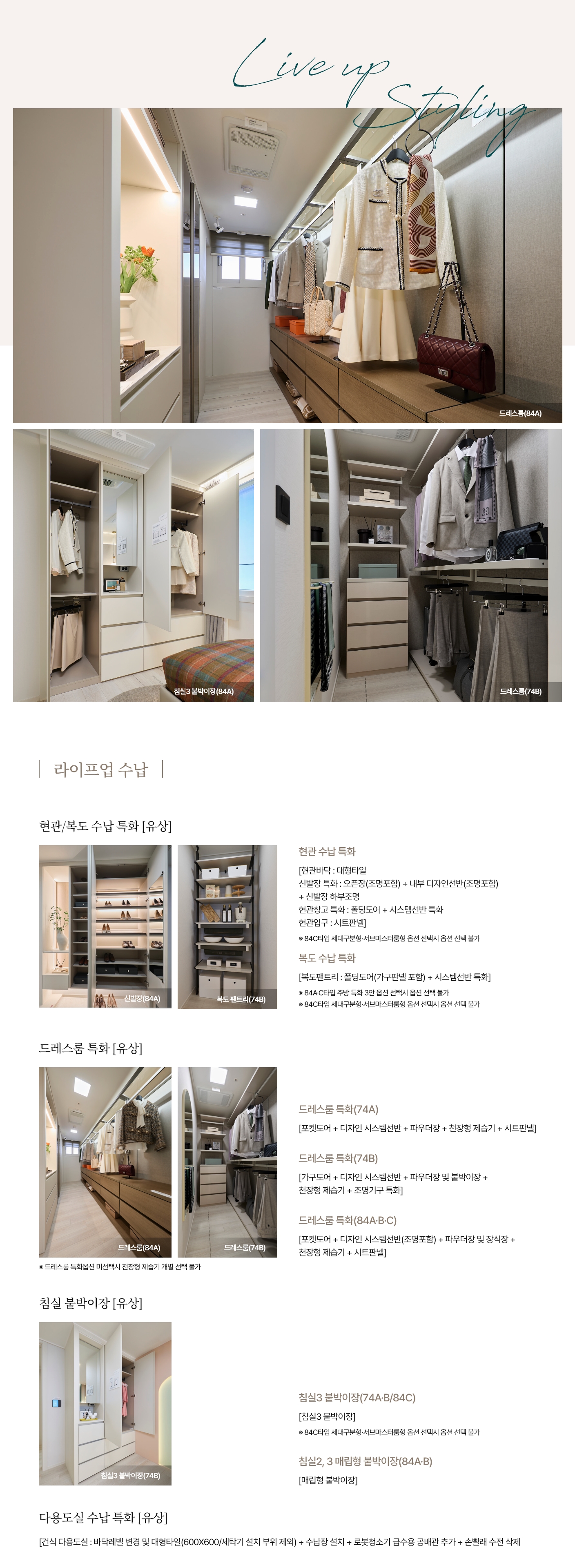 상기 이미지는 전시품목과 유상옵션이 포함된 견본주택을 촬영한 것으로 타입별로 유상옵션 적용항목, 특화범위 및 위치는 상이하며 실제 시공 시 차이가 있을 수 있습니다.