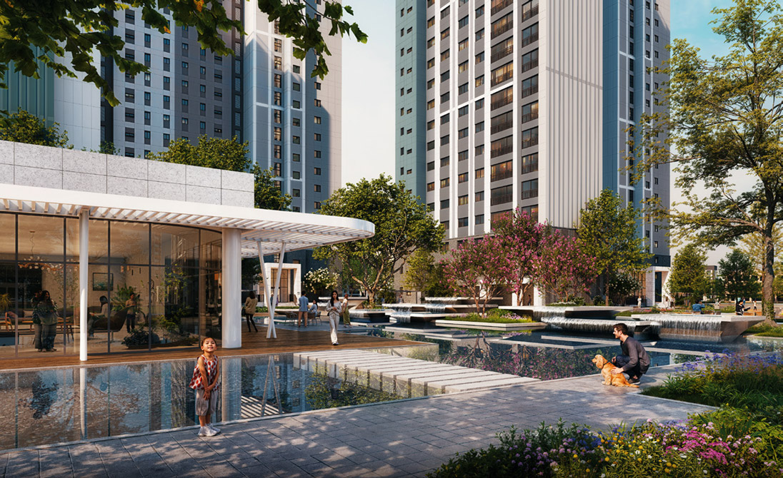 감각적인 티하우스와 청량한 수경 시설이 조화를 이루어