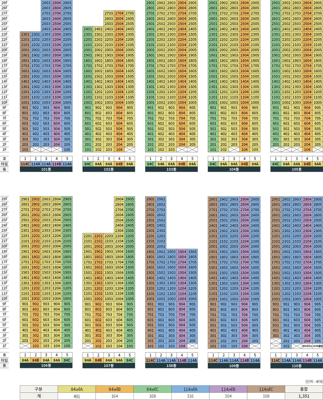 • 상기 동호수표는 제작 과정에서 오류가 있을 수 있으니, 청약 및 계약 전 반드시 견본주택에서 확인하시기 바랍니다.