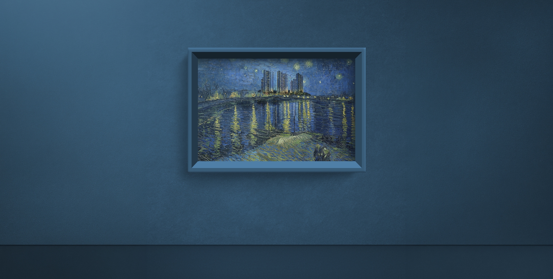위 이미지는 원작 「빈센트 반 고흐 - 론강의 별이 빛나는 밤」을 모티브하여 제작한 이미지입니다.