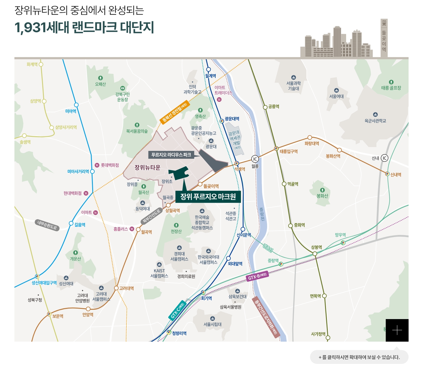 - 장위뉴타운 : 서울시보 제3956호 ※동 북선 경전철(예정) : 국토교통부 고시 제2015-423호 ※ GTX-B(예정) : 국토교통부 고시 제2024-373호