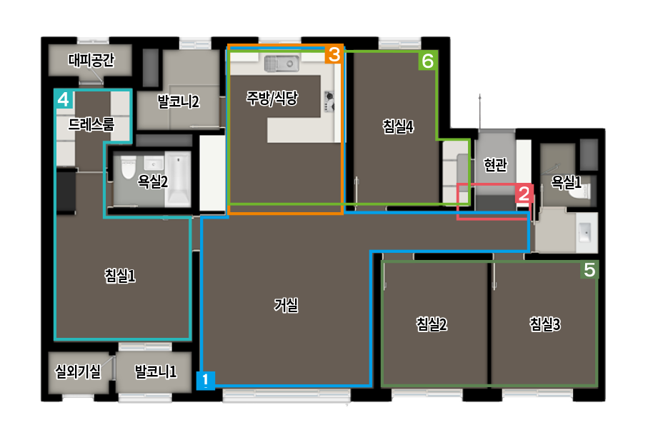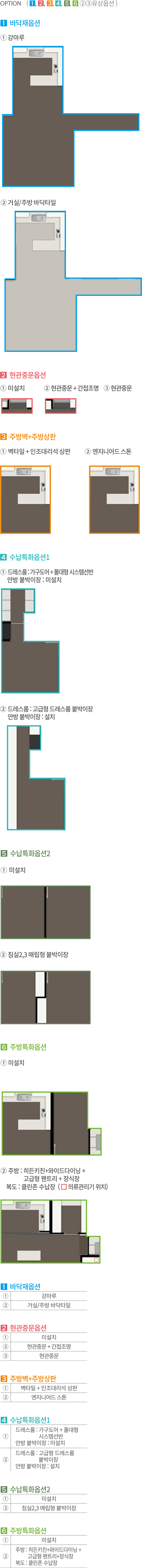- 발코니 확장 및 옵션 선택에 따라 배선기구, 스마트 스위치, 조명기구, 세대분전반, 온도조절기 및 스위치 등의 종류, 수량, 위치는 변경될 수 있습니다.