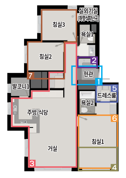 • 드레스룸, 욕실 바닥 등은 별도 난방제어가 불가합니다.