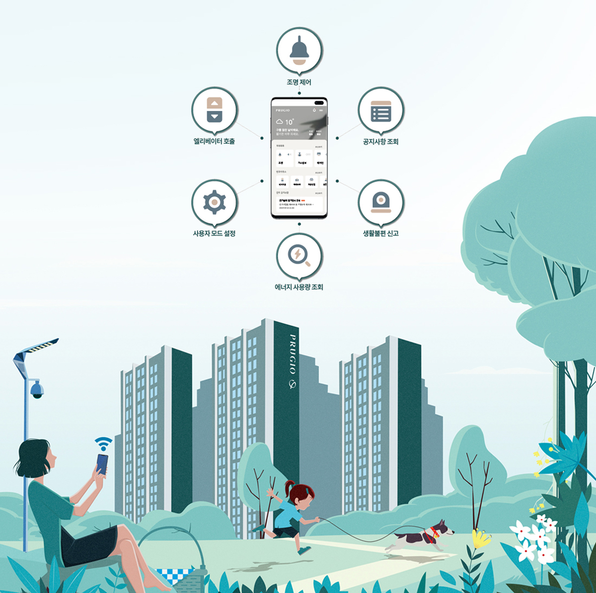 푸르지오 스마트홈 앱으로 언제, 어디서나 세대 내부의 기기를 제어하여
