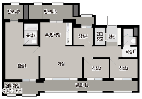 • 세대 내부 가구(붙박이 가구, 주방가구)설치 부위의 비노출면(바닥, 천장, 벽체)은 별도의 마감을 제공하지 않습니다.