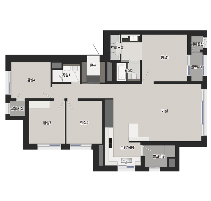 • 상기 평면도는 소비자의 이해를 돕기 위한 것으로 실제와 차이가 날 수 있으며 전시품목이 포함되어 있으므로 견본주택에서 확인하시기 바랍니다.