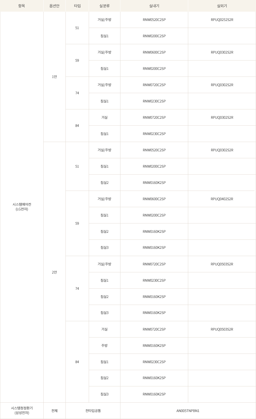 84㎡A 시스템 에어컨 및 청정환기 모델명