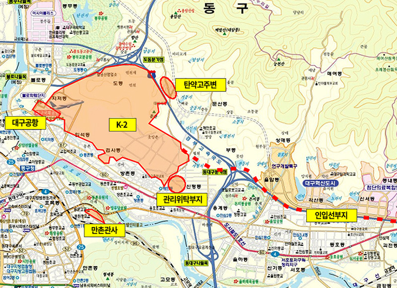 7.10㎢(215만평,K-2군공항6.93㎢, 대구공항0.17㎢)