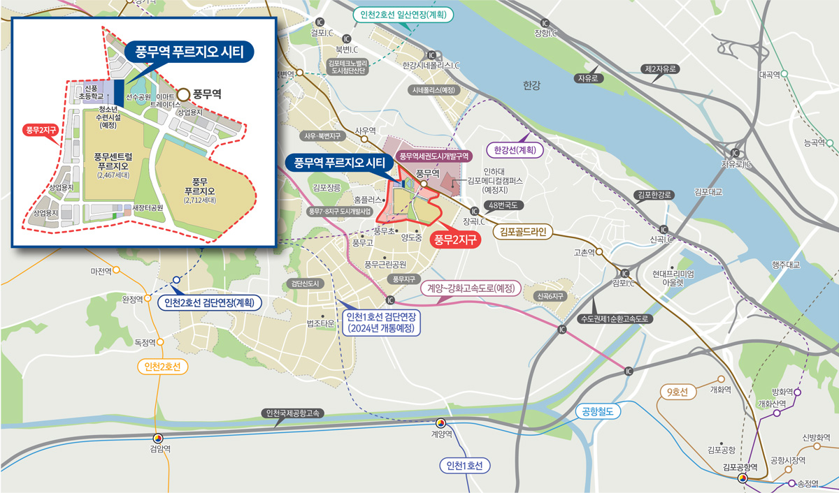 - ※ 서울까지 2정거장 표현은 김포골드라인(풍무역~고촌역~김포공항역)노선 기준입니다.