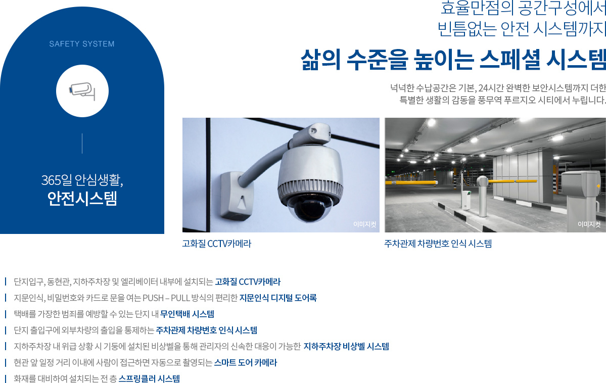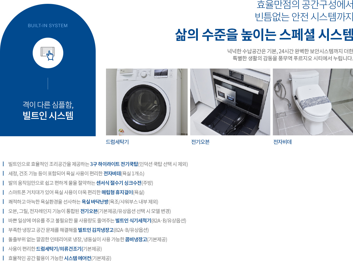 - ※ 상기 마감 및 시스템 사양은 입주 시 오피스텔 현장 여건 및 구조, 성능, 상품개선을 위하여 동급 또는 이상의 제품으로 변경될 수 있습니다.